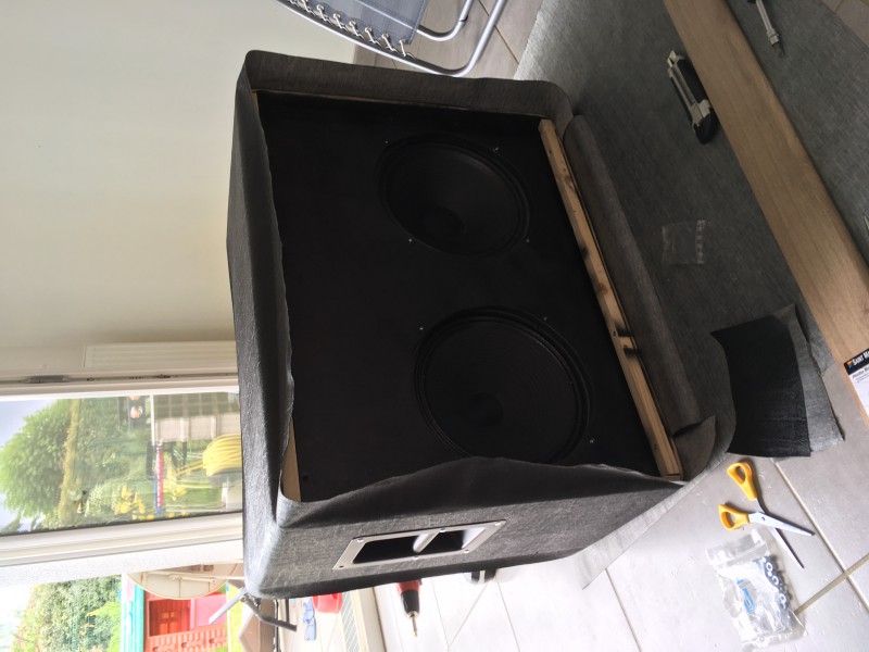 J'ai acheté du contreplaqué en 15 mm, des tasseaux de 20 mm, et j'ai commandé tout ce qu'il faut sur TubeTown (tolex, poignées, tissu, piping, poignées, jack, vis, pieds...).