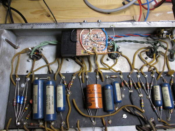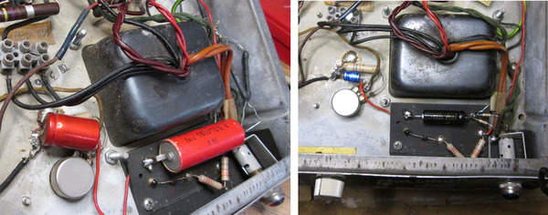 ici, un Blonde 6G6-B qui avait un petit problème de bias. Un bias réglable avait été installé avec des condos de récup à bout de souffle... (avant - après)