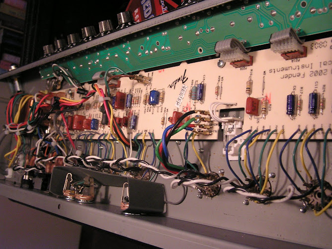 Je dirais que le plus simple si on veut profiter un peu plus de ce qu'offre les DRRI est en premier les remplacement des tubes de préampli SURTOUT celui en V2 qui à un impact direct sur la tonalité et le gain du canal Vibrato (mais il n'y a pas que cela pour le gain) et un ajustement du bias des 6V6GT.