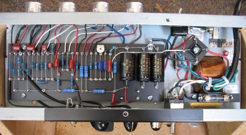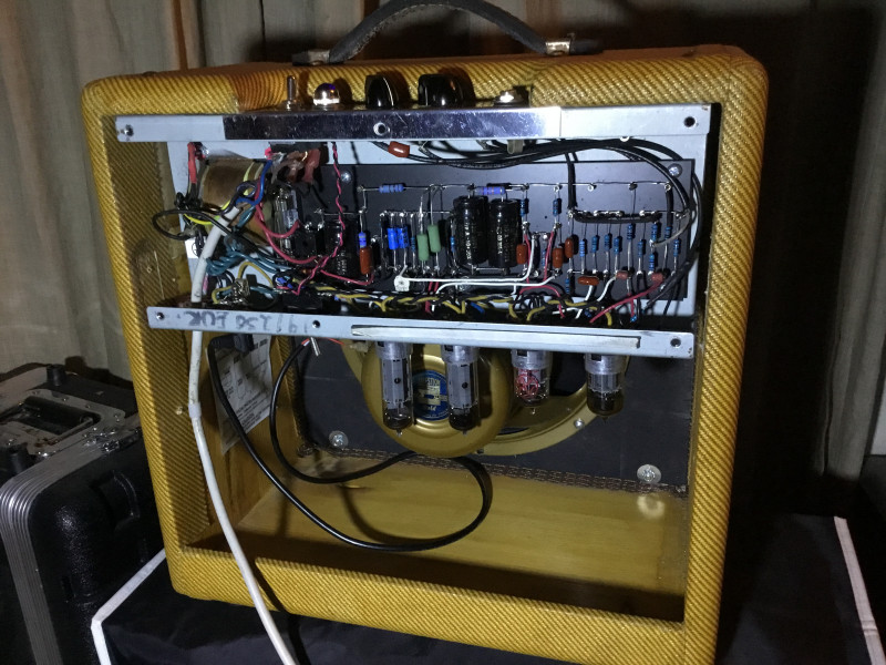 Cab en pin fairfield, HP celestion alnico gold, et montage Ptp hoffman, sélecteur anti feed-back..