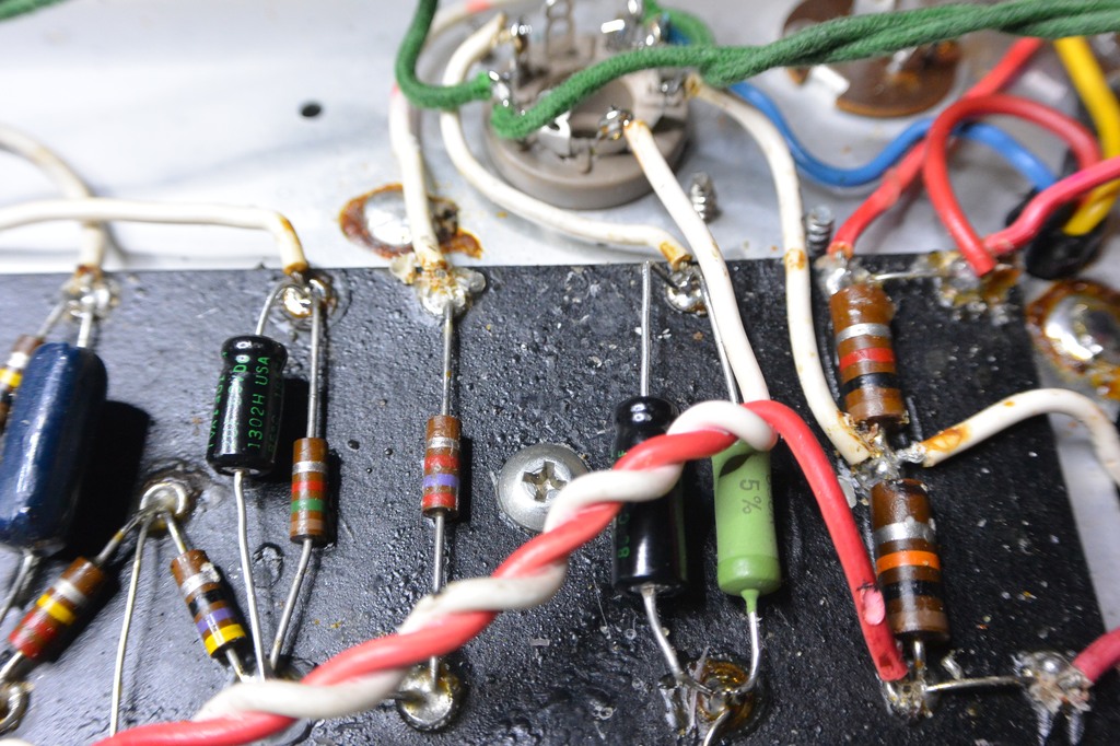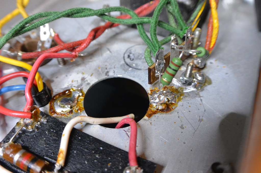 L'ajout des deux résistances de 100 Ohms en oubliant pas de supprimer le cable qui relie le voyant et un des deux cables du transfo 6,3V à la masse