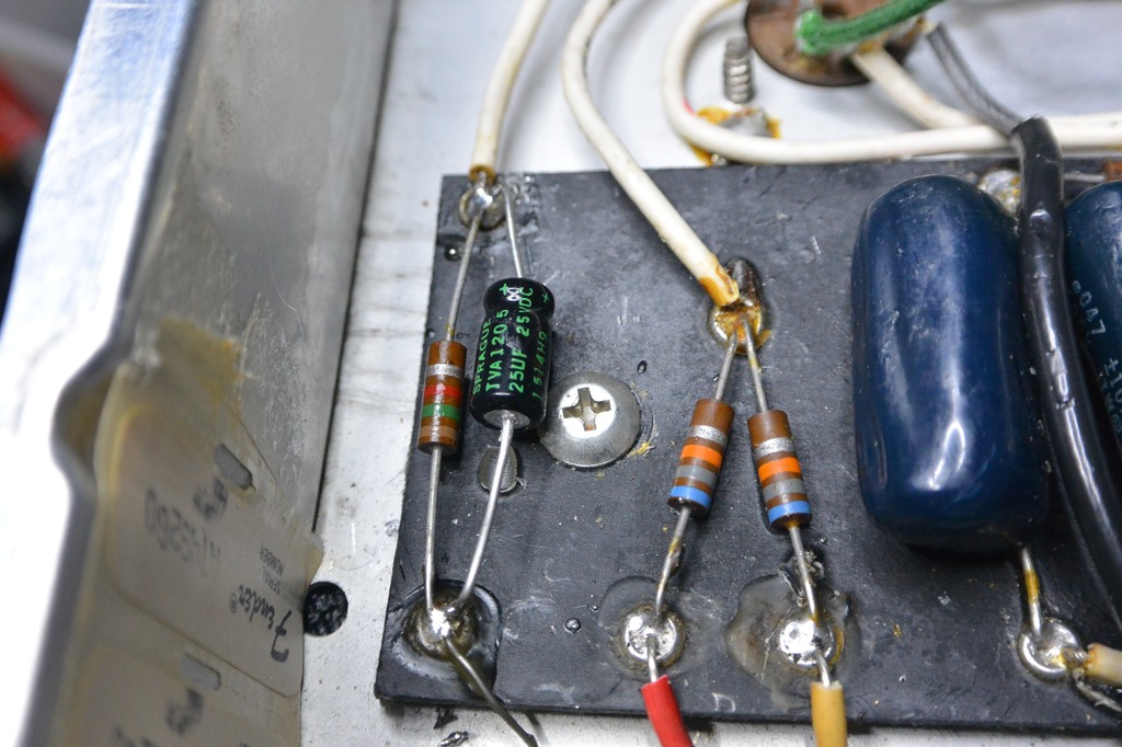 ainsi que les 3 condo polarisés, j'ai aussi changé la résistance de 470 Ohms pour une 680 Ohms 3W (à voir ce que cela va donner)