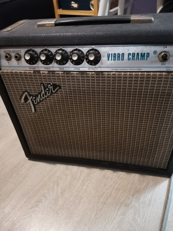 Je viens de récupérer un Fender Vibro Champ, à priori de 74, stocké depuis bien longtemps.