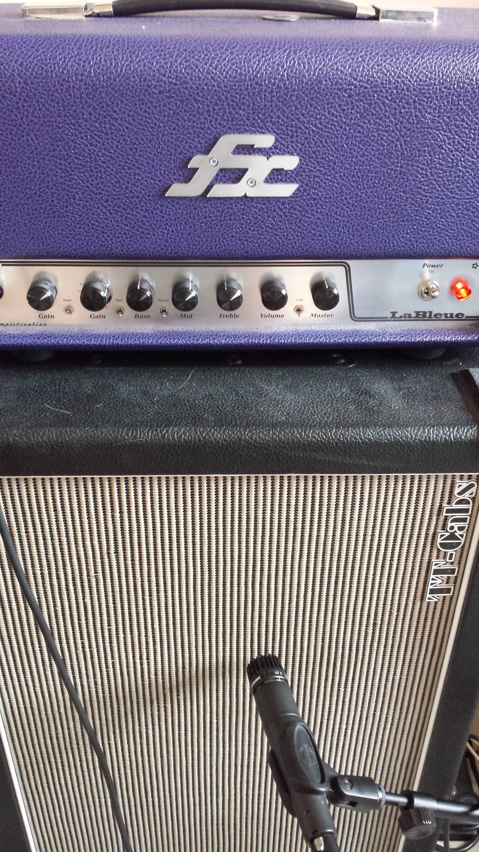 Principalement un 2x12 Bogner avec 2 vieux greenback biens rôdés. Parfois un 1x12 avec un G12-65 bien rôdé