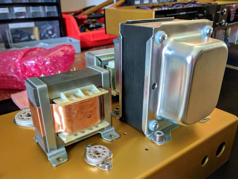 Apres reste les transfos, imagine la taille des miens, comparé a un transfo typique qu'on trouve dans ces amplis en El84 ou 6v6 :