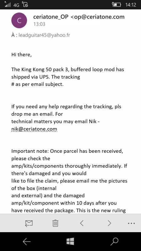 Hier soir j'ai testé la centura sur le KK. Je voulais savoir si la Centura non enclenchée a un impact sur le son tel que j'ai pu le lire à maintes reprises... Donc j'ai joué et enregistré (avec mon samsung... pas le tps de faire autrement)... La difficulté est de jouer tjrs de la même manière (pour être totalement objectif, j'aurais du utiliser un sampler, il n'y a que ça à mon avis pour avoir un jeu tjrs constant, même un pro joue différemment à force...). Bref en direct, oui il semblerait que même non enclenchée, la Centura a un effet: plis d'épaisseur, de corps, même si ça reste de l'ordre de la subtilité. Mais il m'a aussi semblé qu'elle ote de la brillance et du grain de l'ampli... Lorsque je la débranchais, je me rendais compte à chaque coup ô combien le KK est un ampli merveilleux, déjà dès le canal clair, un grain, une réponse incroyable au signal de la guitare, au jeu du gratteux... Je ne ressentais pas ce que j'ai pu lire ça et là : "dès que j'enlève ma Centura (ou ma Centaur), j'ai un manque... bla bla bla...". Si l'ampli tue, il se suffit à lui même et oui une pédale peut amener un plus mais l'ampli doit pouvoir se suffir à lui même... AMHA... Le KK est ce type d'ampli. Les nombreuses possibilités de réglages permettent de sculpter le son quelque soit le type de guitare et de micros... Rhaaaa I'm in love! Ça va faire 30 ans que je joue et c la première fois qu'un ampli me fait cet effet! Même mon HRM m'a fait vendre mon two rock! Mais là.... Ce sont mes pédales (OD, disto) qui commencent à avoir chaud!