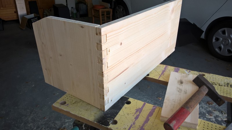 D’un autre coté avec ce que je vais économiser sur le prix, j’ai très largement de quoi investir dans un « kit gabarit + fraise » pour ma défonceuse afin de pouvoir réaliser un assemblage en queue d’arronde parfait.