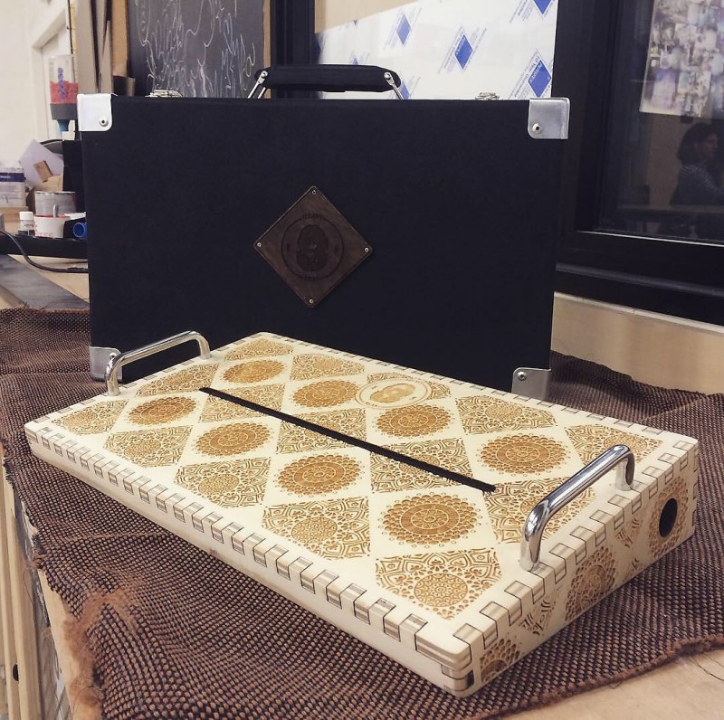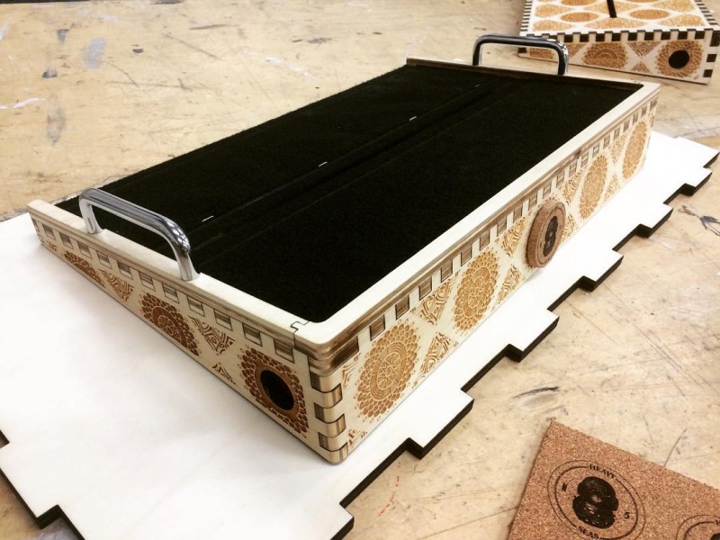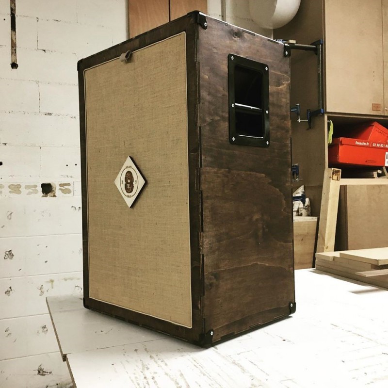 Je réalise donc à la main des cabinets en bois pour guitare et basse ainsi que des pedalboards et flycases. Je suis actuellement basé sur Paris dans un Atelier/Fab Lab.
