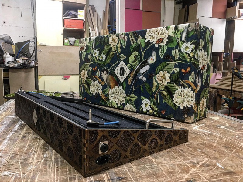 Influencé par de nombreux artisans français du monde de la musique et de l'artisanat (Le Pape, Das Viken, Wild Custom, Acouphonic, Daguet, Meloduende, Kraken, Anasounds.. pour mes préférés et j'en oublie) Je voulais tenter une nouvelle approche des cabinets et pedalboards customs.