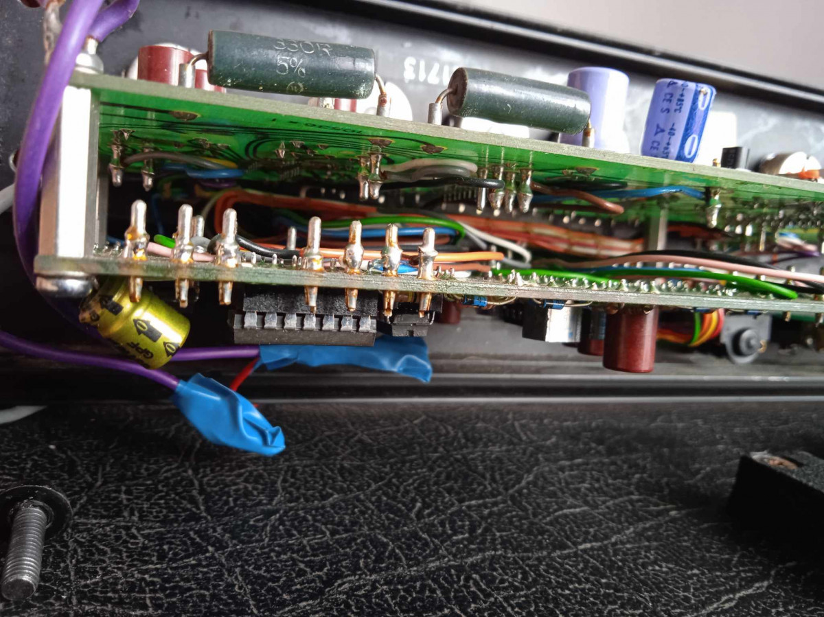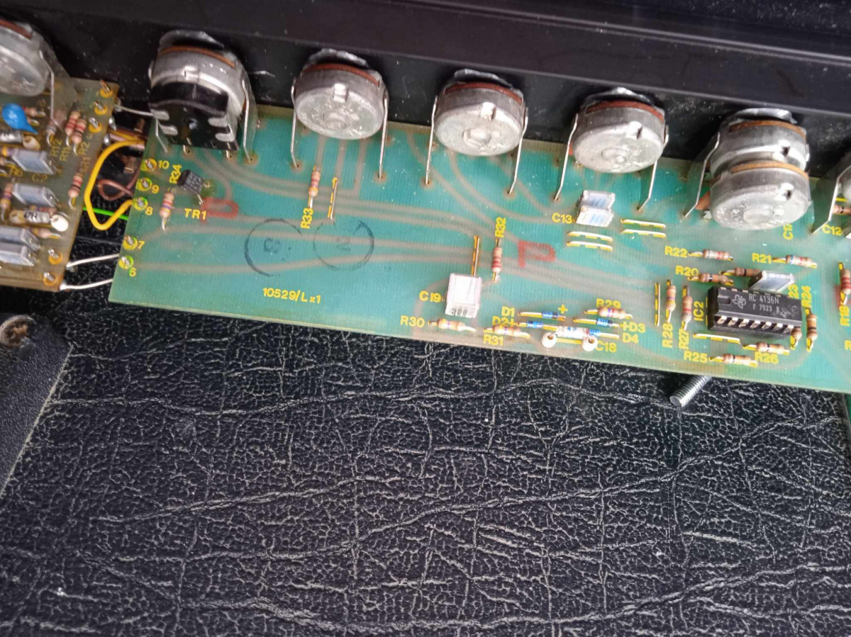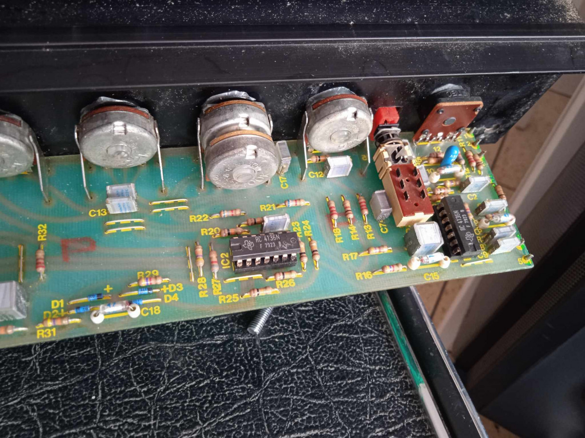 Je pensais que le circuit de reverb était sur la carte en dessous, celle en photo en 1er page, mais aucun IC ne convient à ce rôle.... Sur l'autre pcb il y a bien un op amp 064 et les deux transos...