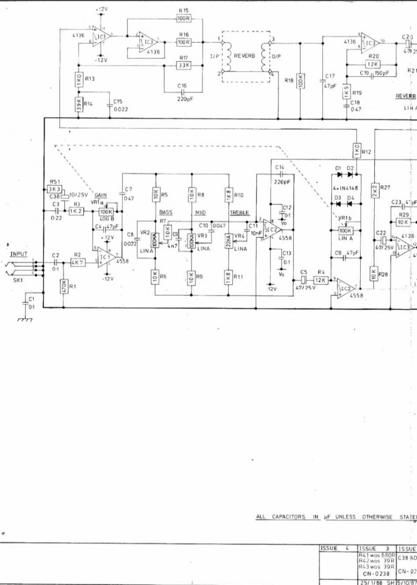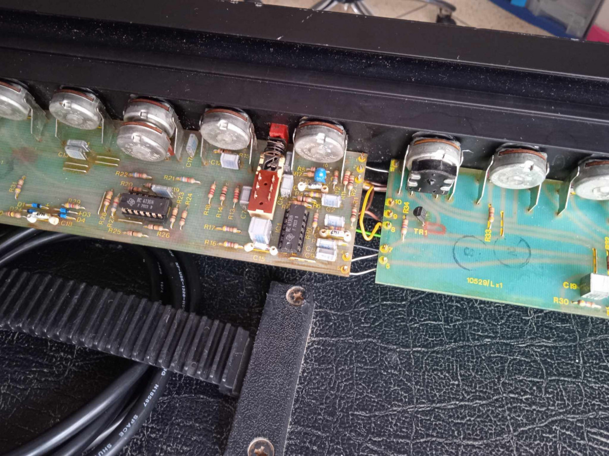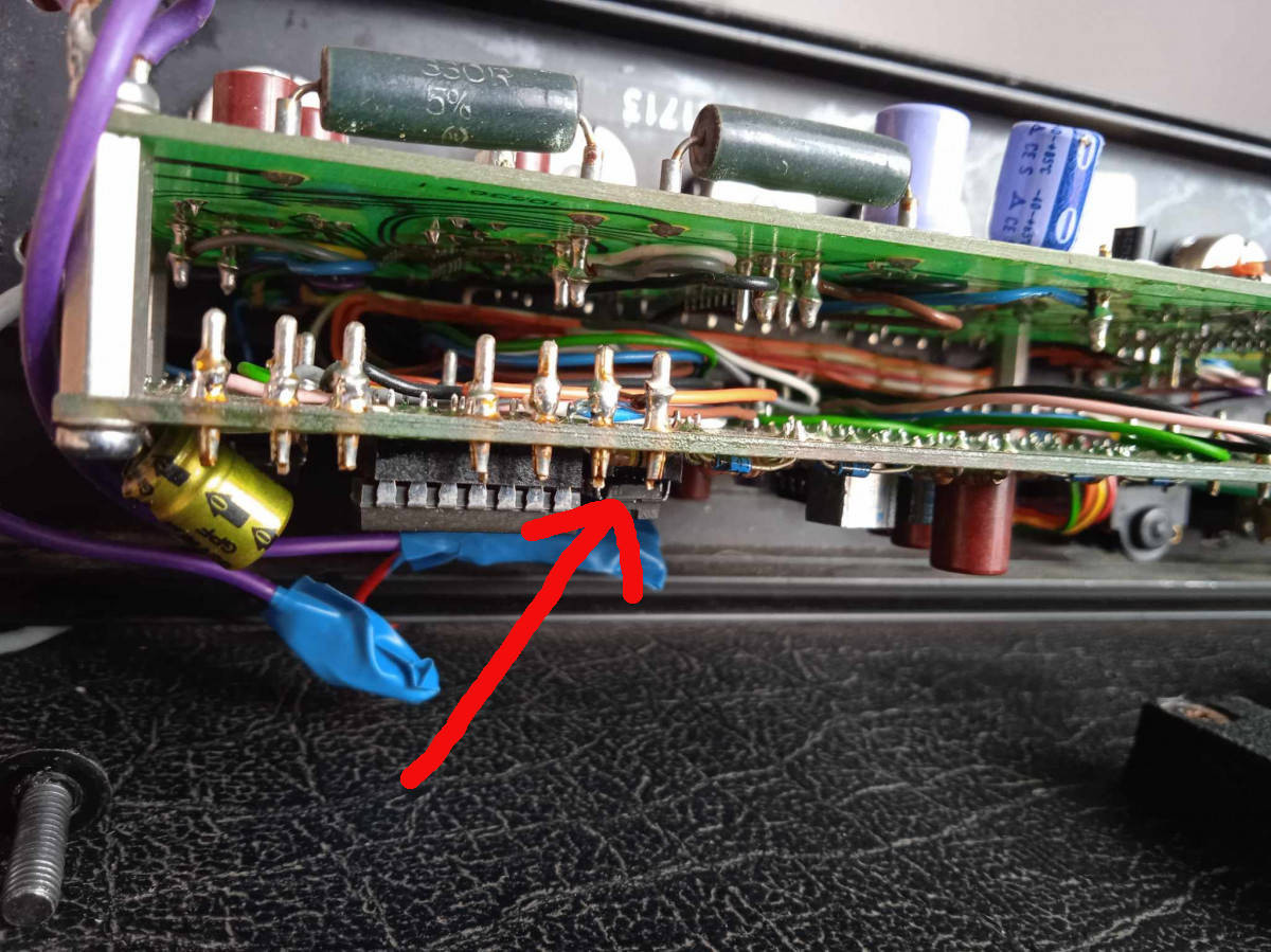 Je pensais que le circuit de reverb était sur la carte en dessous, celle en photo en 1er page, mais aucun IC ne convient à ce rôle.... Sur l'autre pcb il y a bien un op amp 064 et les deux transos...