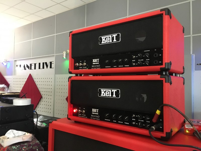 Tête KelT MostrO 55 W, deux modes: Clean/Crunch & Lead footswichable. Chaque mode a son réglage de Gain et son Master Volume pour un équilibre parfait entre les deux modes.