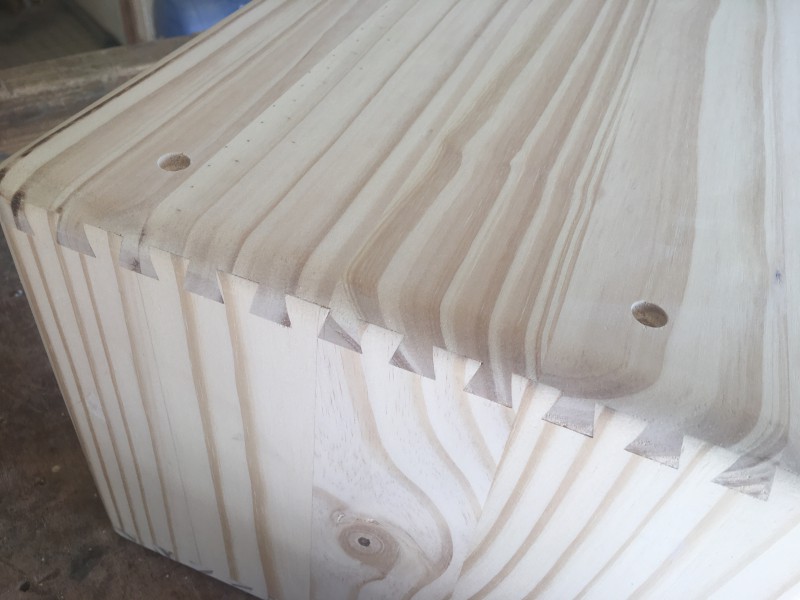 Pas le droit à l’erreur dans ces perçages sinon on ne pourra pas fixer le châssis dans l’ébénisterie... c’est presque dommage d’y coller du tolex sur ce bois...
