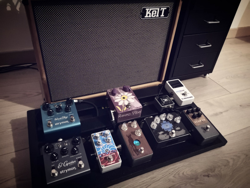 En gros : un hybride entre le v-twin et le sideman, les caractéristiques d'un tweed deluxe avec l'alim énorme et les lampes de puissance 5881 du sideman (ça tire un 18/20w environ).