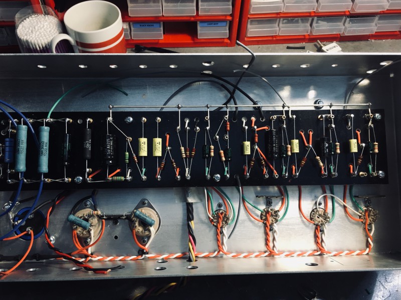 Compter 6 mois... Je sais c'est long, mais ça passe vite !!! Je n'arrive pas à travailler plus rapidement, il faut que ça soit impeccable, même ce qui ne se voit pas... Cela dit mon "savoir-faire " si je puis dire s'améliore et globalement je travaille quand même plus vite qu'au début. Les amplis sont faits un par un, je n'en met que rarement plusieurs en chantier en même temps. Et contrairement à la légende, il n'y a pas tant que ça de de passes droit: JM Kajdan attend depuis 6mois et Axel Bauer a attendu aussi... Pareil NeoGeoFanatic. Il n'y a en gros que Trust qui a eu un traitement de faveur, parce qu'il leur fallait impérativement deux têtes MostrO pour commencer en mai la tournée 2018.