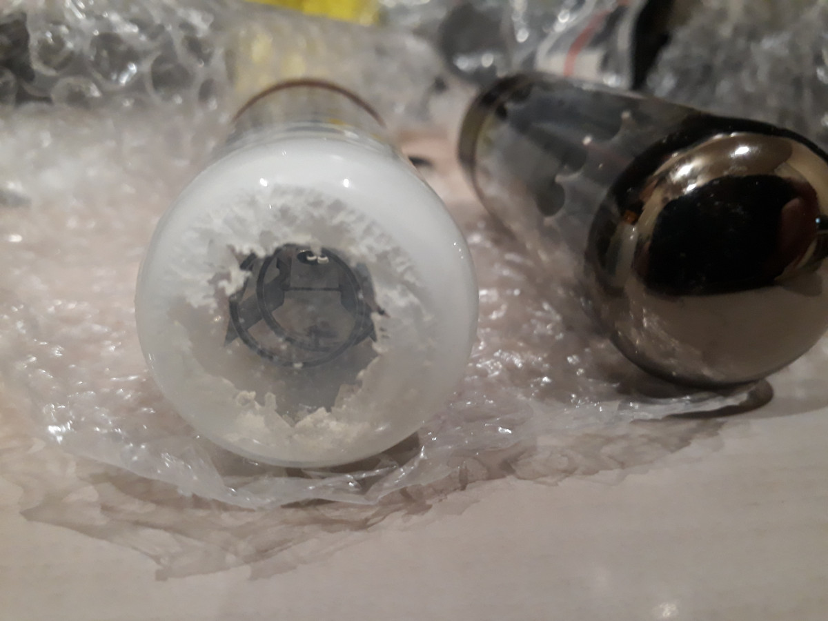 Bonjour, je pose la question à tout hasard sur ce forum, au moment de changer mes lampe, je ressort mes deux EL34 appariées, déjà testées très bonnes il y a de ça 4 ou 5 ans... Et surprise l'une d'elles à perdu le coté métallisé, un peu miroir du haut du bulbe , qui est devenu blanc et est tombé en poussière tout seul dans sa boite sans que la lampe ait servie, c'est la seule lampe qui a fait ça dans un carton plein de lampes EL35, 6L6 ou 12ax7, les autres lampes n'ont pas bougées... Je précise que c'était une lampe ancienne, mais qui testait à 100% quand je l'ai achetée avec son binôme appariée, et que je l'ais déjà installée sur un ampli, ces deux lampes fonctionnaient très bien. Y a-t-il une explication à ça ???