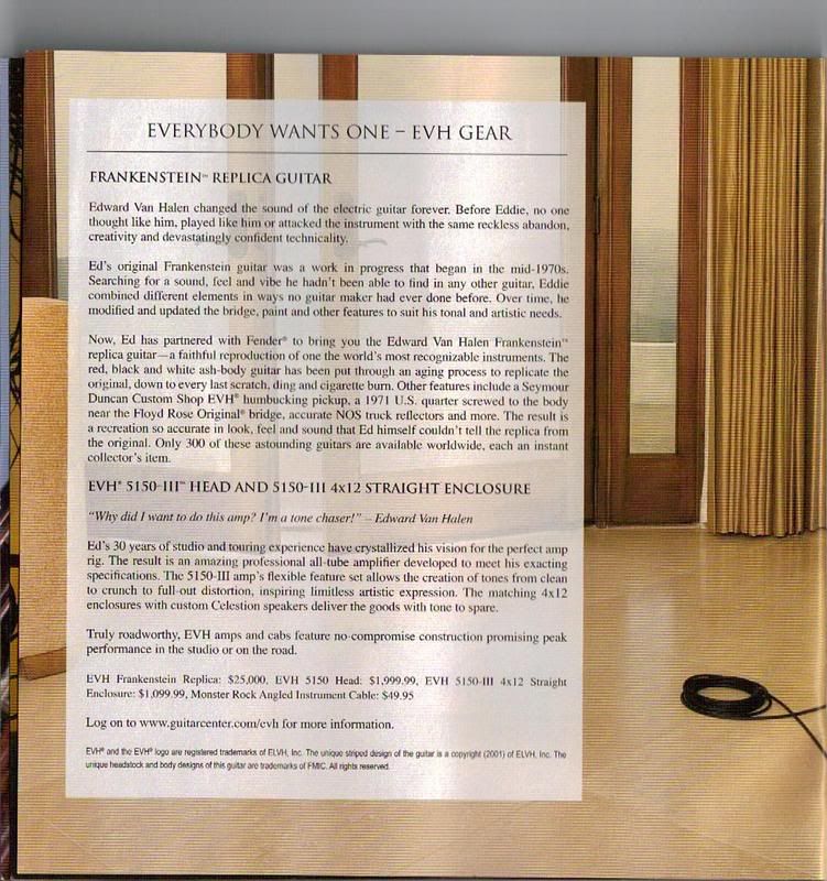 Dans l'article de Guitar World EVH parle de la conception de son ampli en long, en large et en travers et notamment de ses "crash tests", on y trouve des choses étonnantes :