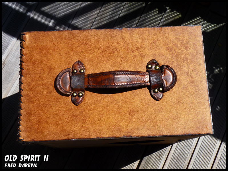 Comme j'ai un faible pour les mal-aimés, les vilains petits canards qui ploient sous les quolibets et les moqueries acerbes j'ai donc eu plaisir à transformer mon Code 25 en Old Spirit II (le premier était un Micro Cube Roland qui est parti arpenter les routes de Roumanie). Et pour la dernière étape je lui ai ajouté une poignée en vrai cuir de bête morte récupérée sur une très vieille malle de voyage.