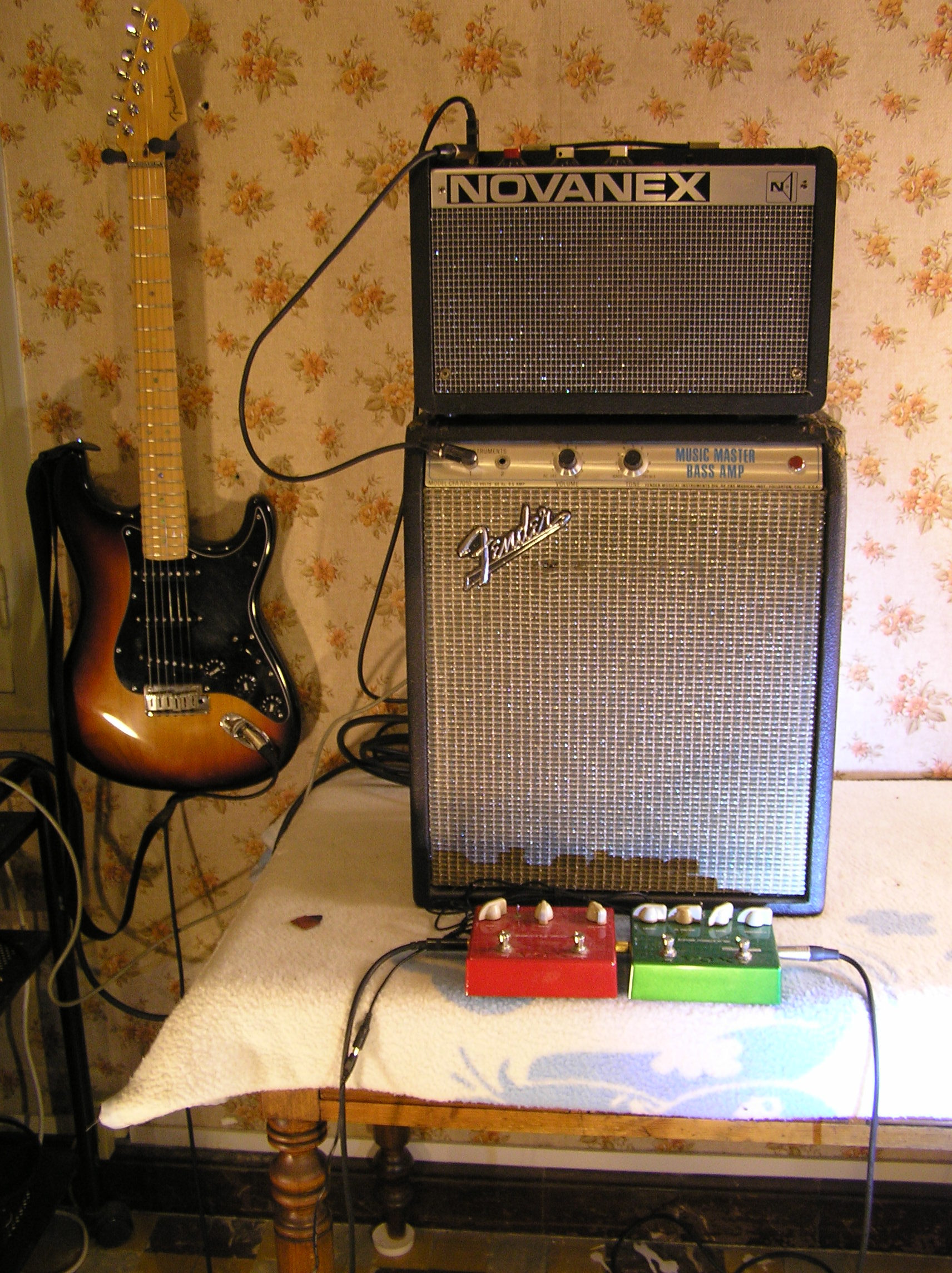 j'y ai branché une us deluxe avec des micros 57/62, une vox satchurator et une vox time machine, des pédales analogiques pas bien cotées mais franchement bonnes
