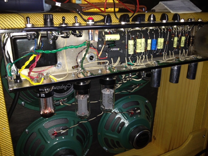 En volume, rien de comparable avec mon SR de 66 avec lequel j'ai du mal à dépasser 3 à 3.5 /10 au potard de volume (l'ampli commence tout juste à "respirer"...surtout avec les Celestion Gold