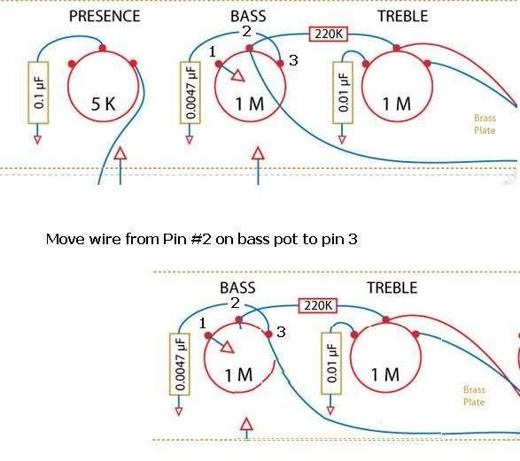 Oldamp, dans un précédent message (que j'avais vu passer ici), tu parlais d'une modif à réaliser sur le 5E7 ou 5F4 pour mieux gérer le potentiomètre des basses, et notamment pour éviter la perte de gain quand on baisse les basses.