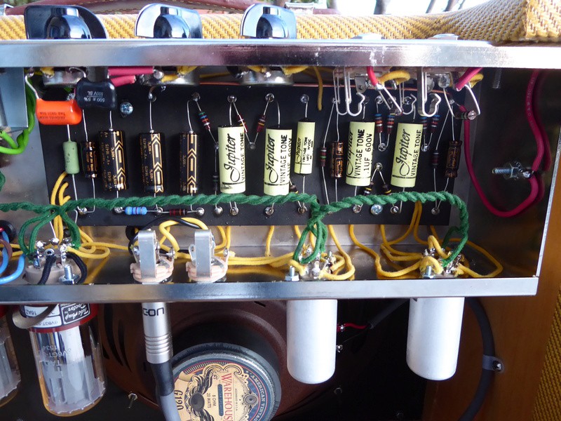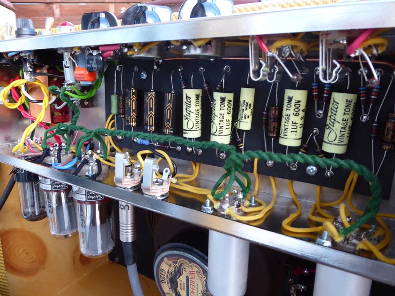 Comme pour mon 5F2, c'est basé sur un kit TAD avec quelques petits upgrades (condo de couplage Jupiter, sockets de tubes Micalex, bus de masse et première résistance de voltage drop en 2W au lieu de 1/2W, n'est-ce pas oldamp ?