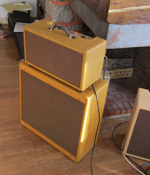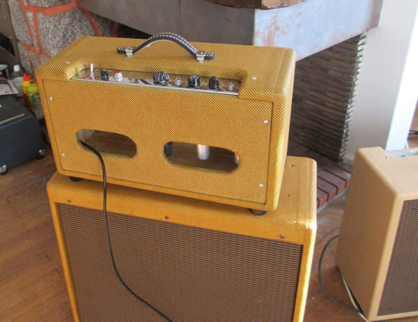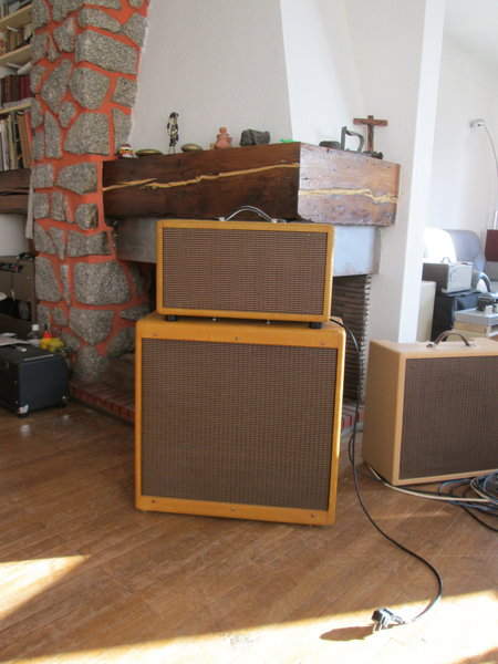 Tiens, si tu ne les avais pas encore vu, les photos de la fabrication de mon 5F1 (devenu 5E1 depuis), sur lequel j'ai (presque) tout fait (cab, eyelet board, chassis etc.) : 2011-02 Tweed Champ DIY