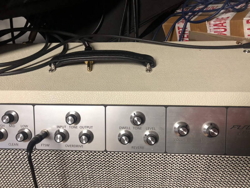 Oui, j'ai l'équivalent du HF trimpot en façade, pratique pour régler les aigus spécifiquement sur le son lead, et des réglages de Tone et Dwell pour la reverb également en façade.