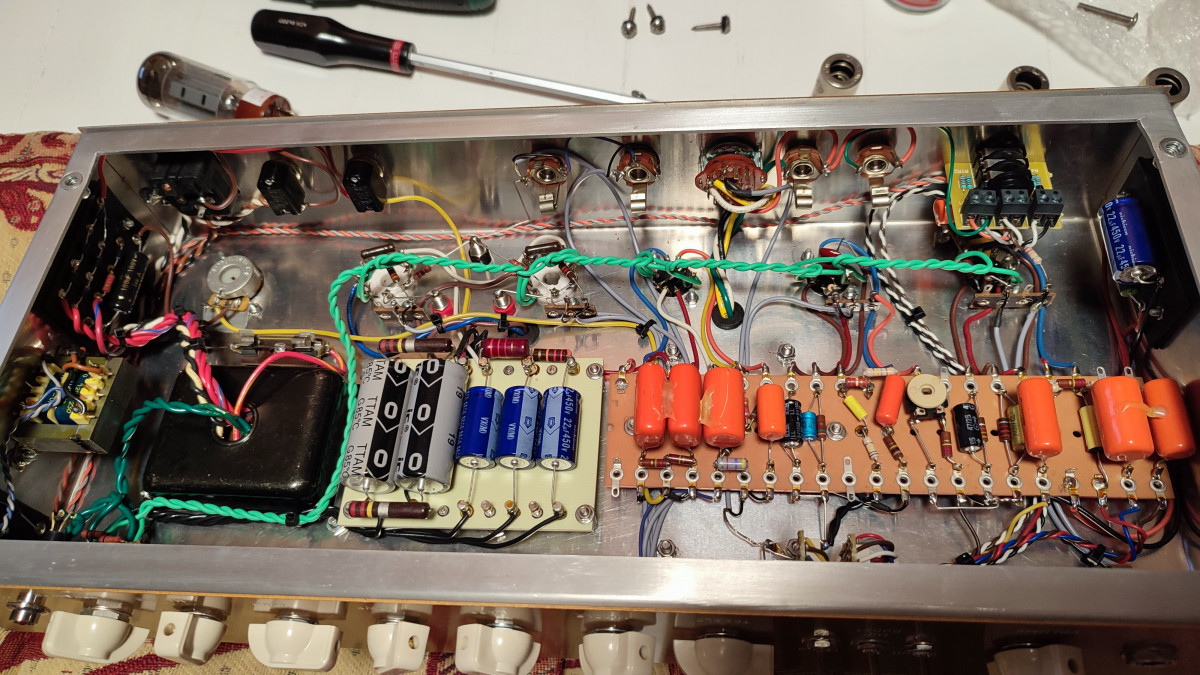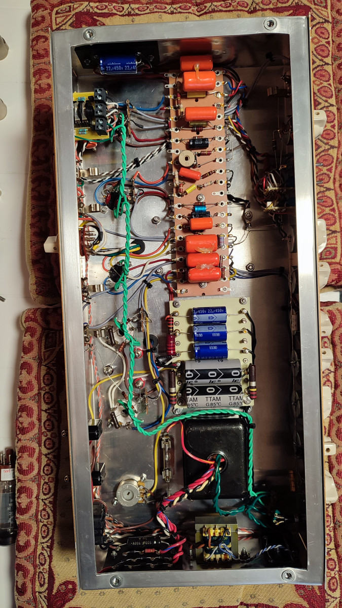 j'ai changé (je pense la V1) avec une 12 AX7 plus velu, ça crunch un peu plus en toute fin de course sur le premier volume et cela donne vraiment une belle couleur bluesy.