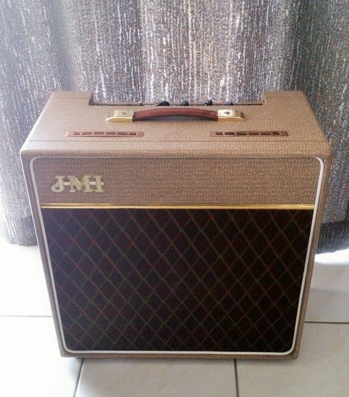 Comme annoncé, j'ai reçu il y a quelques jours mon JMI4 en fawn tolex. Il s'agit d'un des JMI de la première génération, avec la grille en losanges fidèle aux designs Vox.