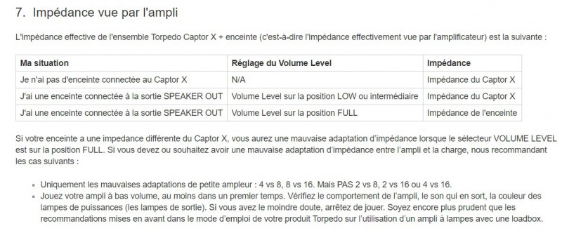 Et aucun souci à brancher un cab en 16 ohms avec ton ampli en 8 ohms et le Captor X tant que tu restes en mode atténuation à -20dB ou -38dB. En mode full tu auras un mismatch par contre. Mais ça reste un mismatch acceptable.