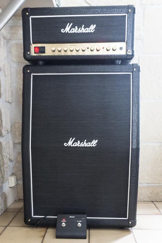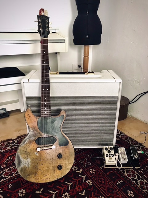 Jeu tout au potard comme j'aime et rien aux pieds (un boost always on planqué derrière l'ampli), facile à s'installer et son constant quel que soit le lieu ou on joue, enfin!
