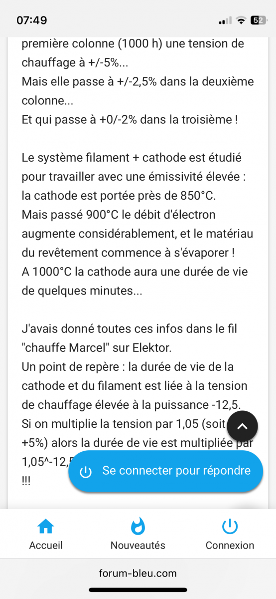 Il vaut mieux avoir une tension de chauffage un peu plus élevée qu'un peu trop faible.