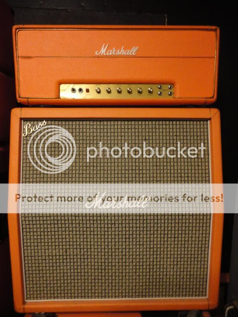 C'est super beau ! Orange est une de mes couleurs préférées (je porte d'ailleurs un pantalon orange alors que j'écris ce message) mais, certainement à cause des amplis Orange, ça fait tout bizarre de voir un Marshall de cette couleur...