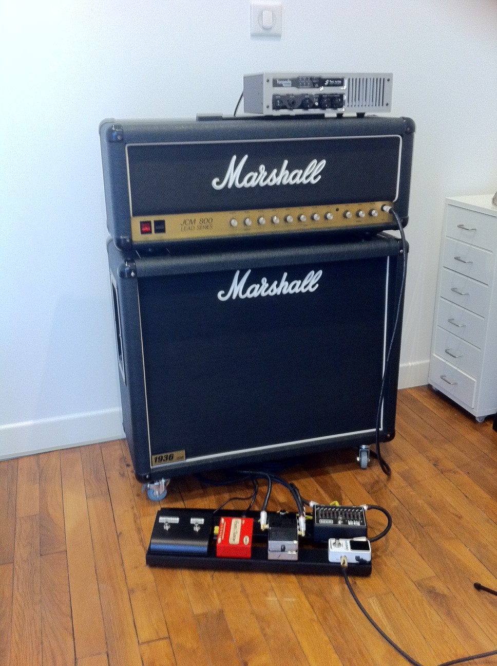 - Amps : Mesa-Boogie, Marshall, Soldano, Ampeg, Carvin, Pignose, Fender, ObLX, Telefunken, Traynor; Cabs : Electrovoice, Audax, JBL, Weber, Beyma