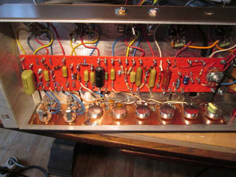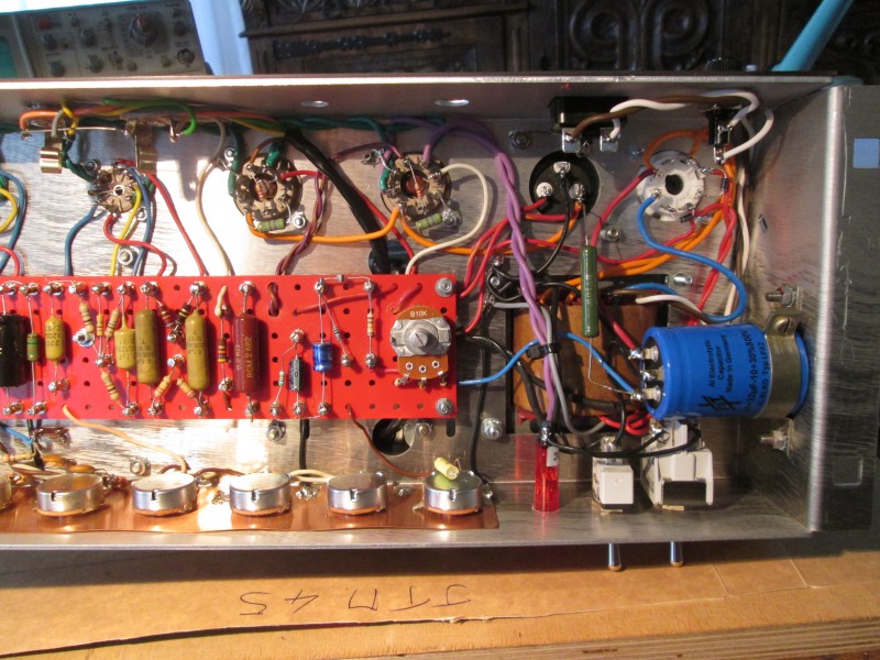 Pour la(les) cathodes, 820 pour les deux ça fait 1.5 chacune, mais oui, une 2.2 ou 2.7 ferait un autre bias, plus froid, à tester. Je m'étais aussi poser la question de l'utilité du 250 µF suivi d'un 0.022 en liaison... un 0.1 serait plus cohérent ! mais ça devient un ampli basses ! par contre, un 0.005 sur le canal bright suffirait... j'ai laissé le 0.022.
