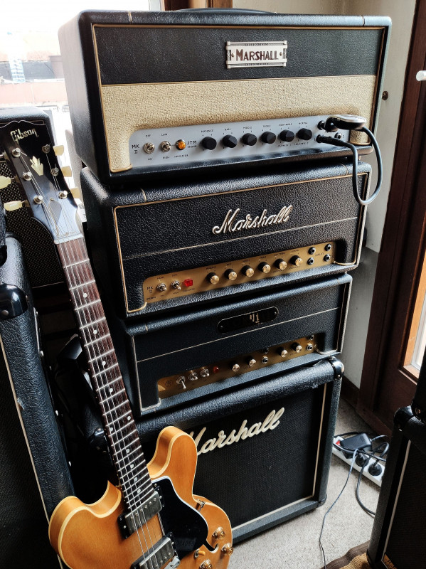 Tout à fond, les lead sont crémeux et le sustain fabuleux. Mais pas fuzzy comme très souvent les JTM45. Et l'ampli cleane merveilleusement au volume, même à fond on peut obtenir des sons clean (et toute la gamme intermédiaire) rien qu'avec son potard de volume, et ceci sans perdre trop de volume justement (toujours cette compression magique), ce qui en fait un ampli de scène rêvé.