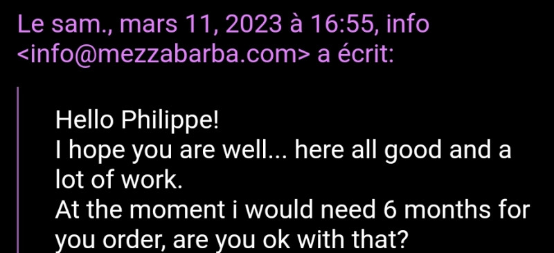 Alors ? Des nouvelles pour la livraison de ton Mezza ?