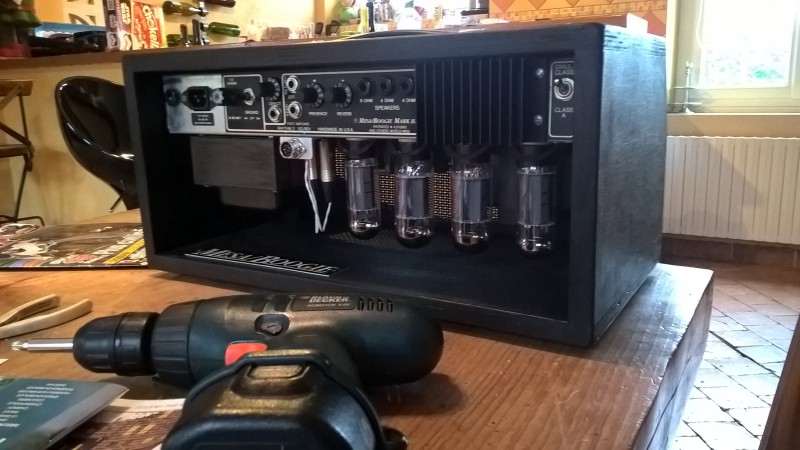 Alors voilà, une occasion se présente là, et j'ai moyen de choper un Mark III (Blue Stripe) pour $800 canadiens, retubé (2 6L6, 2 EL34), condensateurs changés. Il a la modif R2, l'équalo, le Simul-Class. La reverb j'avoue que j'ai pas demandé (mais je pensais utiliser ma Flint de toute façon).