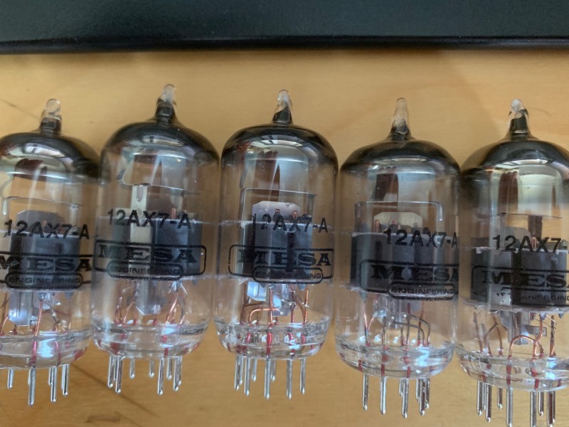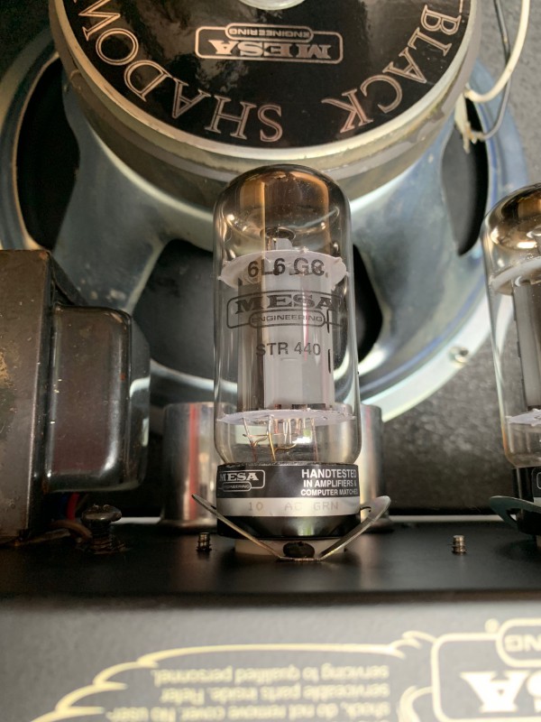 Concernant les lampes d'origine, toutes estampillées Mesa Boogie, il faudra que je sorte celle de preamp pour voir les ref, mais les 6L6 ce sont de STR440 green.