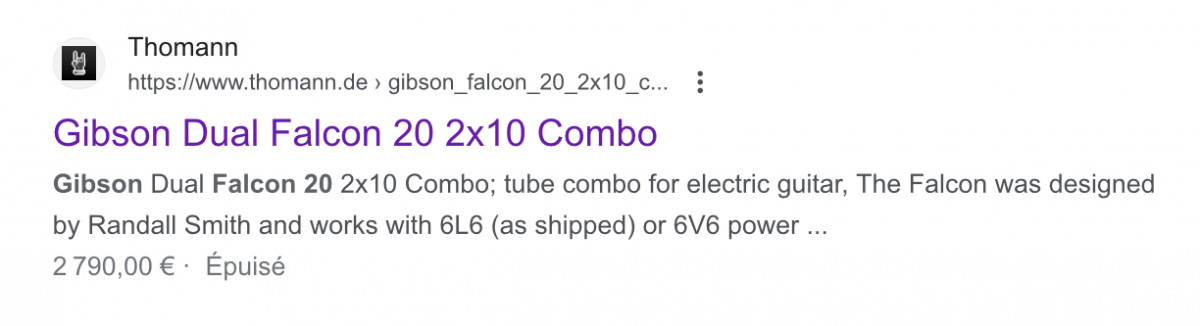 Le Falcon 20 annoncé sur le site Gibson à 2200€ (TVA comprise et envoi gratuit). C'est plus que ce que j'espérais (j'espérais qu'ils restent sous la barre des 2000).