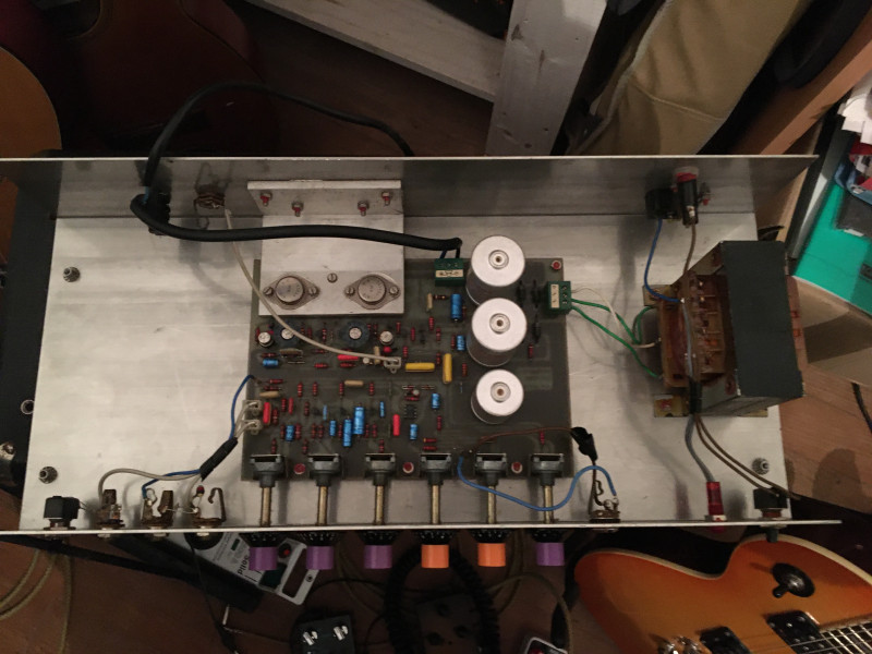 tu me rappele mon ex , fallait que je l oublie mais elle grattait à ma porte tout les jours , bref , bon et bien non ce n est pas mon ampli , ca c est un g70 , pas du tout l interieur du mien , il manque le " wildcat " , deja sur le mien les tiges de potard font presque 5 cm , ils sont tres loin de la facade , je mettrai une photo quand quelqu un me motivera a l ouvrir (l ampli ) , en facade j ai 6 controles , 1 volume , 1 boost , 1 drive , 1 basse , 1 middle , 1 treble , et 3 entrées dont 1 bright avec un inter on off bright , hp de 12 philips , il fait 70 w sur le papier disons , le son est tres loin du transistor , j ai de quoi comparer suffit de regarder sur mon profil et bien a choisir je preferes CE Novanex , chaque potard augmente une sorte de leger overdrive mais juste en dessous , le boost a fond est sympa mais plus joli vers 6 , le drive aussi , les deux se melangent , en fait ca me donne l impression d avoir 6 gains , alors peut etre que c est mieux de le laisser comme ca au risque de perdre ce meli melo de gain/tona si je puis dire , hein ... d ou MA SIMPLE QUESTION !!! prenez ca avec humour , je suis un gentil garcon mais faut pas pousser
