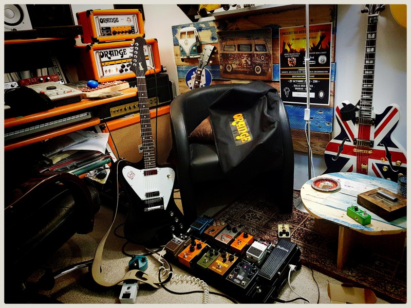Mes vieilles muffs des 70', ça passe... vite fait... la mieux avec l'or15 est la vieille little big muff, celle avec juste un potard de tone et le switch...