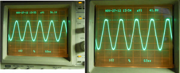 quant aux puissances délivrées, en réfléchisant un peu je m’aperçois que M. Fizelson a raison... mais moi aussi ! en effet, si on mesure la tension crète à crète de sortie sur un oscillo en restant légèrement en dessous du niveau de déformation de la sinusoïde, on calcule P= (Ucàc/2.8 )²/Z