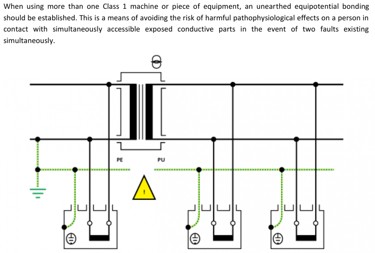 Dans ton cas de figure, tu vas associer deux appareillages de classe I sur le TI, l'ampli et le pedalboard et dans ce cas, il est préconisé d'avoir un conducteur de terre (PU) entre les deux. Ce conducteur de terre (PU) ne sera cependant pas relié à la terre de ta maison (PE). Il va relier les chassis des appareillages de classe I