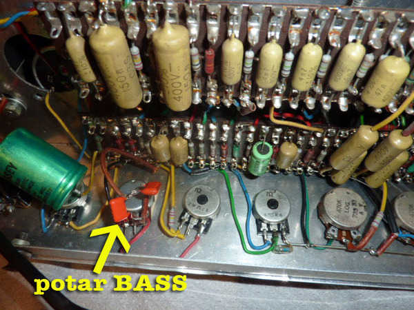 Ainsi, avec les quelques infos que j'ai pu glaner, j'ai pu repérer sur le mien, les fameux condensateur chimique , dans l'étage de pré-amplification et l'étage de puissance qu'il vaut mieux changer surtout si l'ampli n'a pas fonctionné depuis un certain temps. (du à la dégradation du produit dans les condos, parait t'il ).
