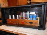 Ici la demande était un ampli très fortement   inspiré d 'un 1987 , j 'ai donc respecté le mode de fabrication original du 1987 avec le turretsboard central et le cablage , même si j 'ai fait le turretsboard à ma sauce .