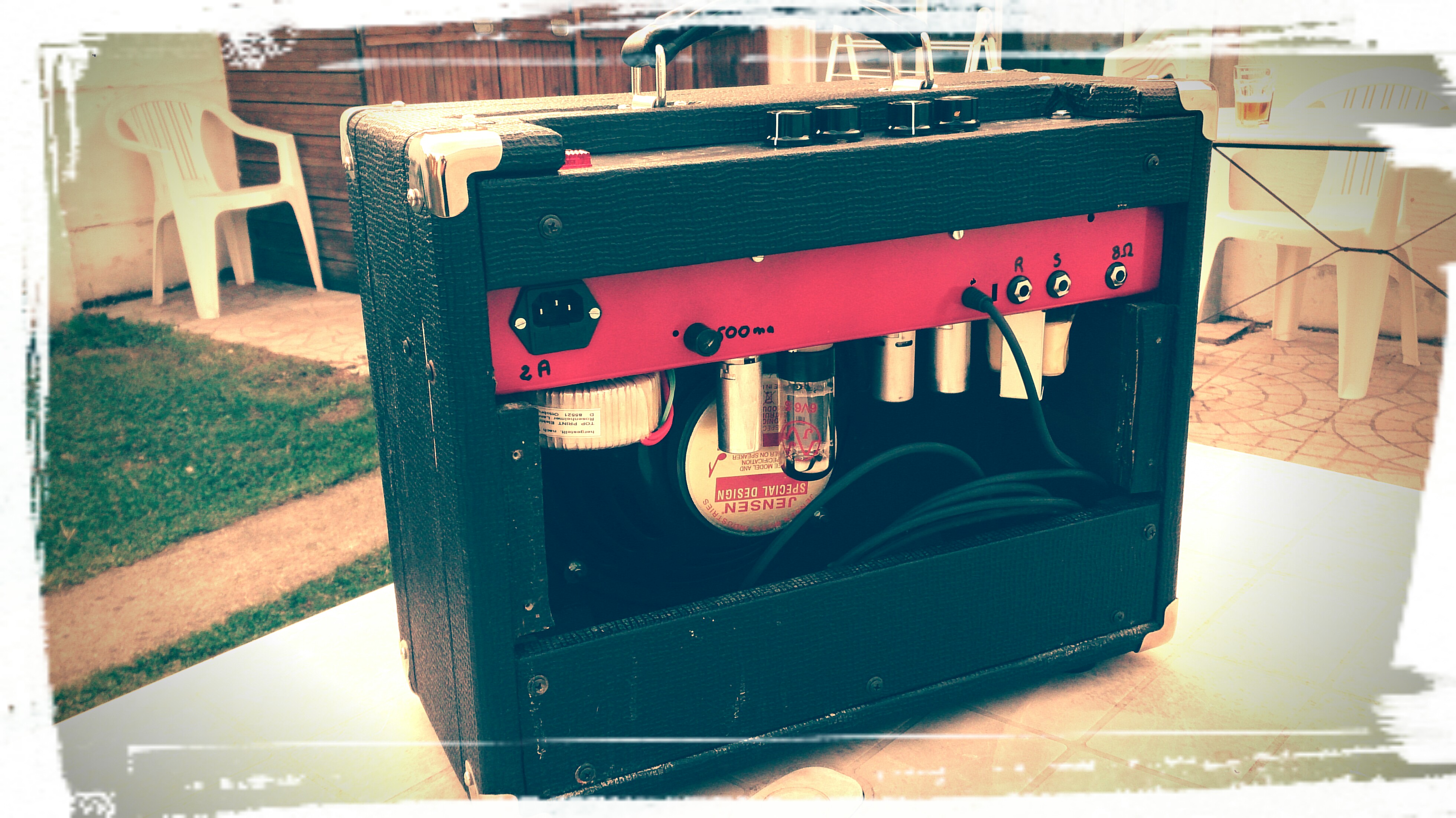 J'ai fait appel à lui dans le cadre de ses "old thing project". Il s'agissait ici de partir d'un petit Laney vc15 en panne, et d'en faire un nouvel ampli dans l'esprit de certains Supro ou Airline pour le format, et d'un fender princeton 6g2 pour le son.