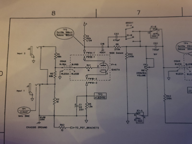 Il y a eu plusieurs version de l'ampli, avec des schèmas un peu différent, c'est toujours prise de tête de savoir quel schéma correspond à l'ampli qu'on a en main.