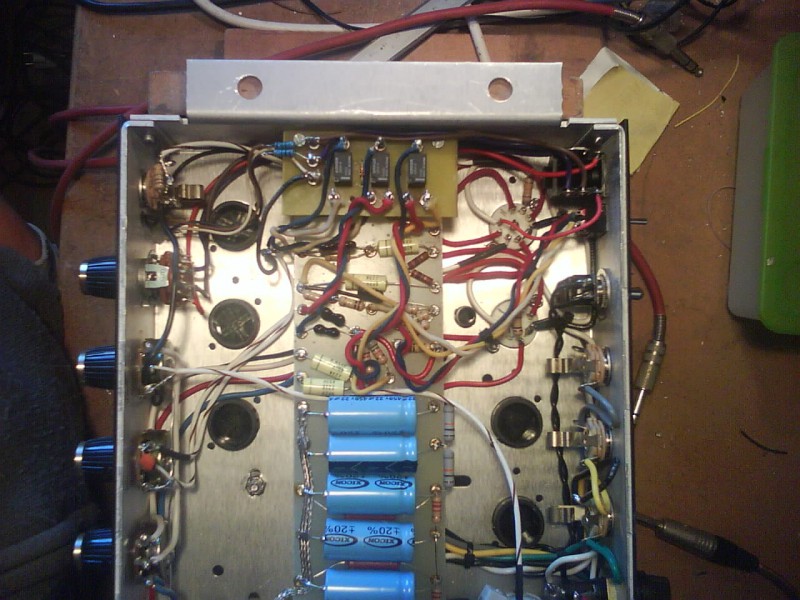 Pour finir par terminer la mod avec des condos qui vont bien (Jupiter et F&T), et quelques modifs sympas (reverbe, switching, tremolo, bias mod, changer une bonne partie du cablage Fender pourri... ).